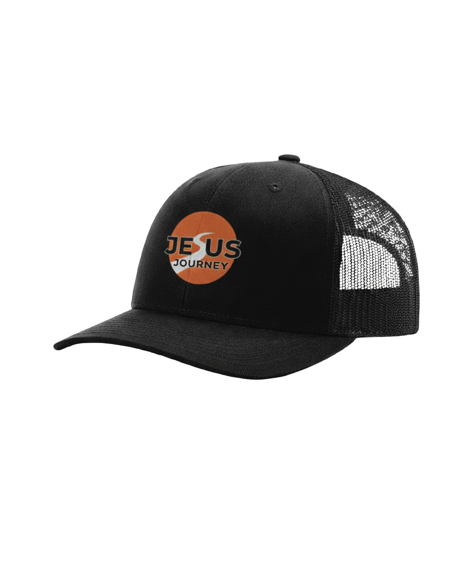 This Jesus Journey trucker cap combines comfort and purpose. It features a structured front panel with the Jesus Journey logo, a breathable mesh back and an adjustable snap closure for a custom fit. Wear it at church gatherings, outdoor activities or on your everyday journey.